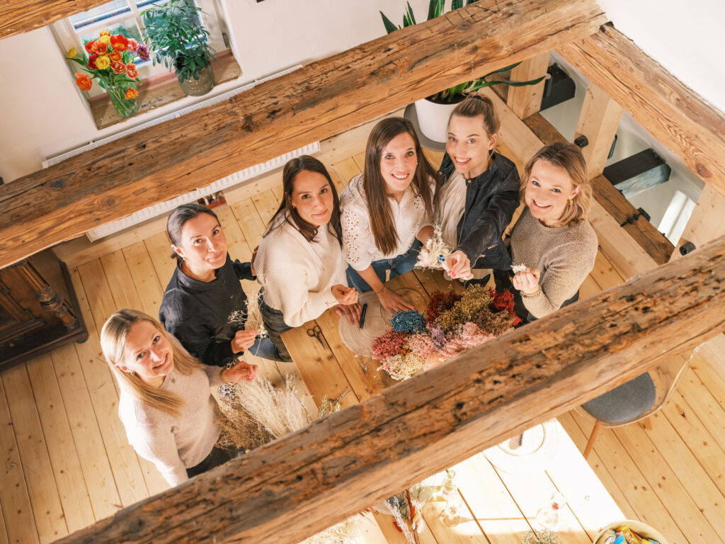 Binde deinen eigenen Trockenblumenkranz auf einem 25 cm Metallring und kreiere ein zeitloses Dekostück für dein Zuhause. Mit hochwertigen Materialien und persönlicher Anleitung entsteht dein individuelles Unikat in natürlichem, modernem Stil.